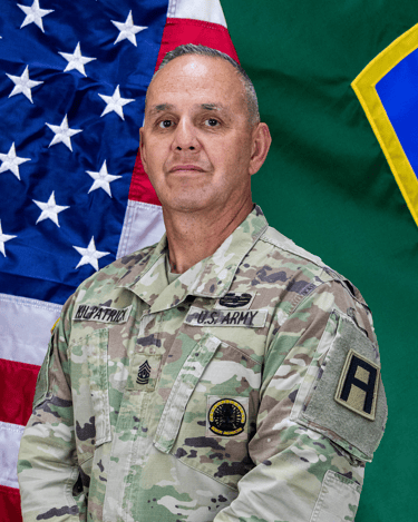 CSM Kilpatrick has deployed in support of Operation Iraqi Freedom, and twice in support of Operation Enduring Freedom. He has also served overseas in the Federal Republic of Germany and the Republic of Korea. His awards and decorations include the Legion of Merit, Bronze Star (1 oak leaf cluster), the Meritorious Service Medal (4 oak leaf clusters), the Army Commendation Medal (1 silver and 1 bronze oak leaf cluster), the Army Achievement Medal (3 oak leaf clusters), the GWOTEM, the ACM with 3 Stars, GWOTSM, the Combat Action Badge, the German Armed Forces Proficiency Badge (Silver), the German Marksmanship Badge (Gold) and the Luxembourg Marche de Diekirch Award. He is also a member of the Order of St. George (Silver and Bronze) and the Order of St. Maurice (Legionnaire).